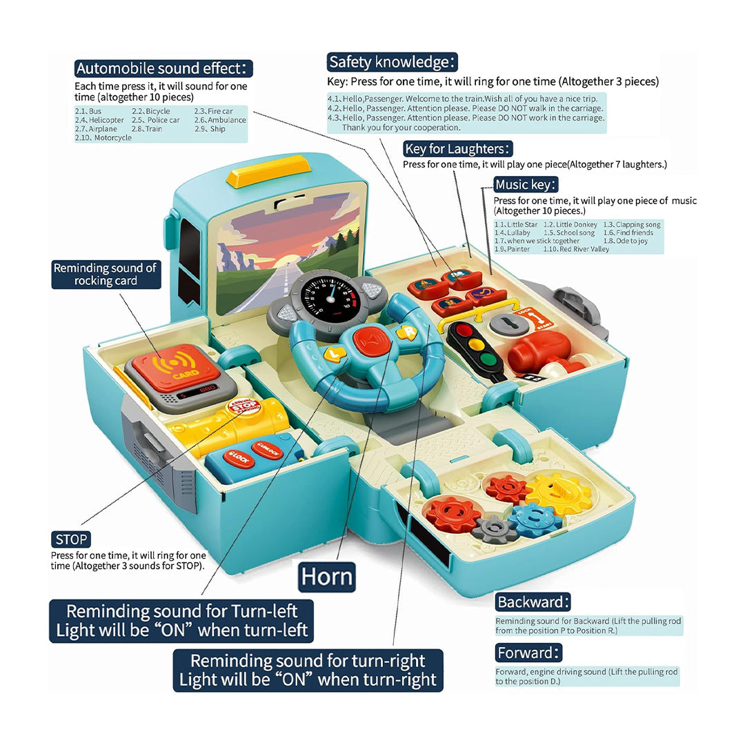 اللعب التفاعلي: تتميز لعبة عجلة القيادة هذه بمجموعة متنوعة من الأزرار ذات الوظائف المختلفة والمؤثرات الصوتية، مما يسمح للأطفال بمحاكاة سيناريوهات القيادة والانخراط في اللعب الخيالي.