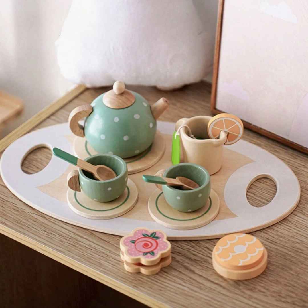 هدية مثالية: مجموعة حفل الشاي الخشبية هذه للأطفال