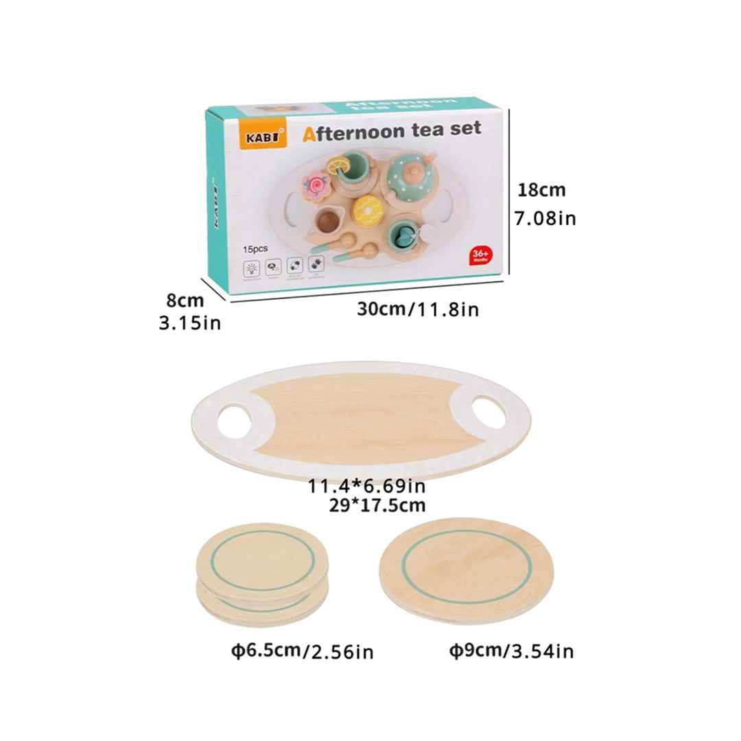مجموعة كاملة من 15 قطعة لحفلة الشاي الخشبية للأطفال