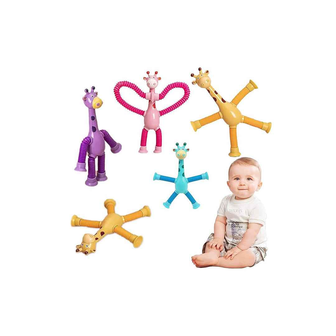 Lights and Sounds: The giraffe pop tubes light up and make fun sounds, adding an extra layer of excitement and sensory engagement. Specifically, the lights flash and the tubes emit playful noises when stretched or manipulated.
