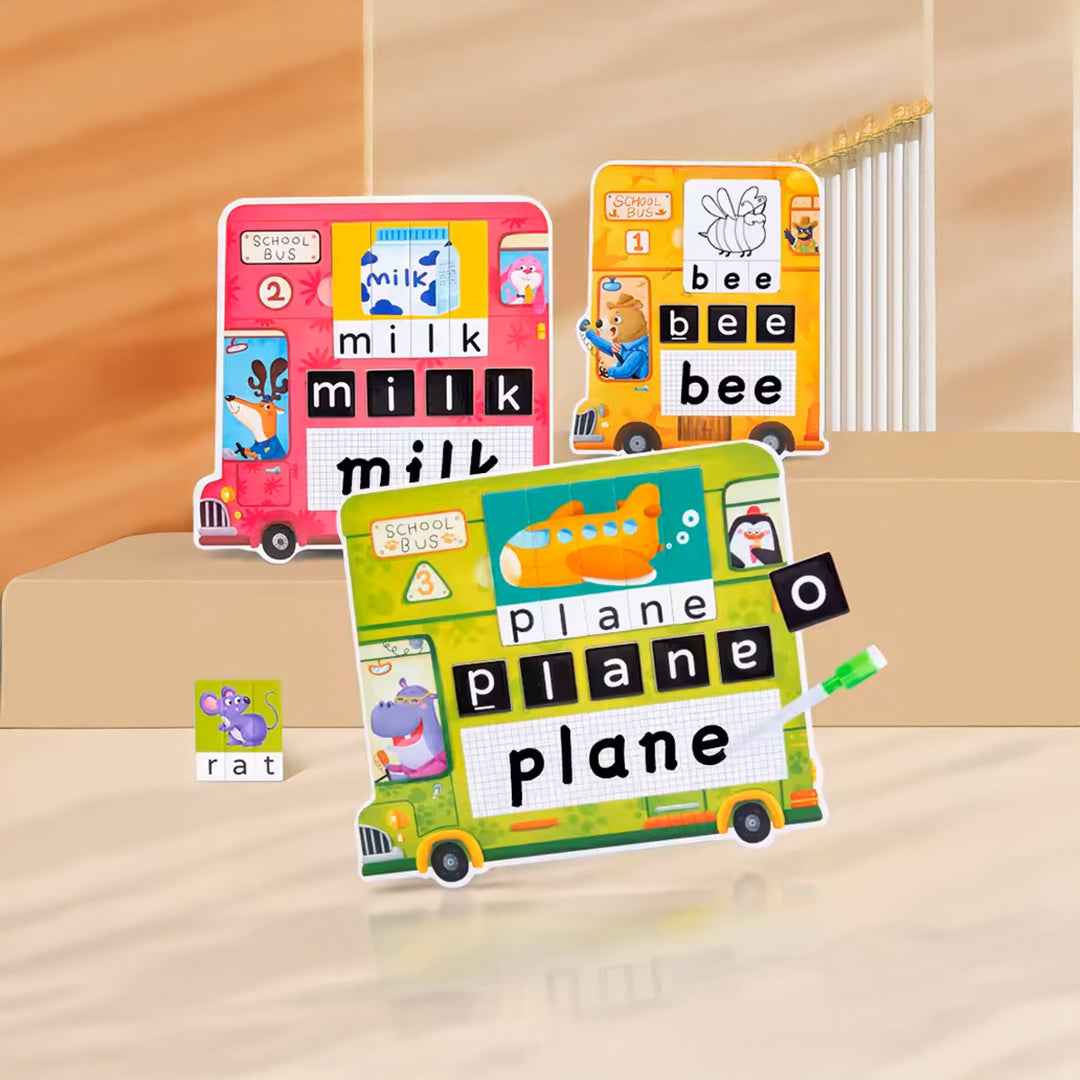 4-in-1 Preschool Educational English Learning Toy - Animal Cognitive Bus with Word Spelling and Writing Board