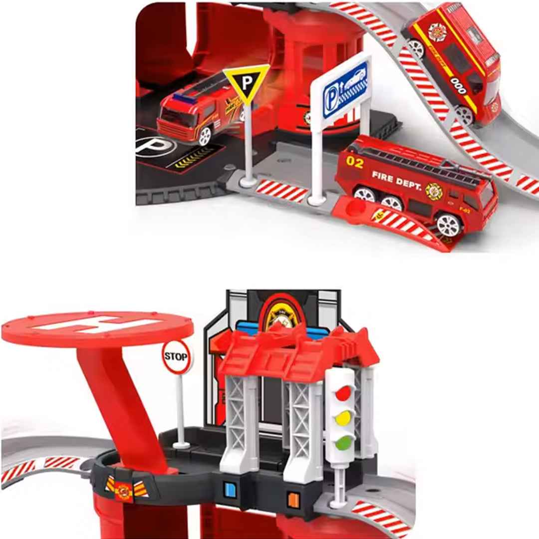 Construction Fun: This parking lot toy allows children to build and assemble their own fire station-themed playset, encouraging creativity, problem-solving, and fine motor skill development.