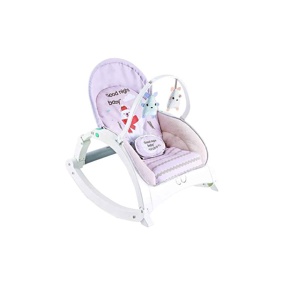The Newborn to Toddler Rock N Play Baby Rocker in a soothing cream color is the perfect companion for your growing child. This versatile baby rocker transforms from a newborn lounger to a toddler seat, supporting children up to 18kg. With soothing music, calming vibrations, and an adjustable backrest, it offers ultimate comfort. The detachable toy bar keeps your little one entertained while promoting development. This baby bouncer is designed to provide a secure and enjoyable space for your child to relax and play.