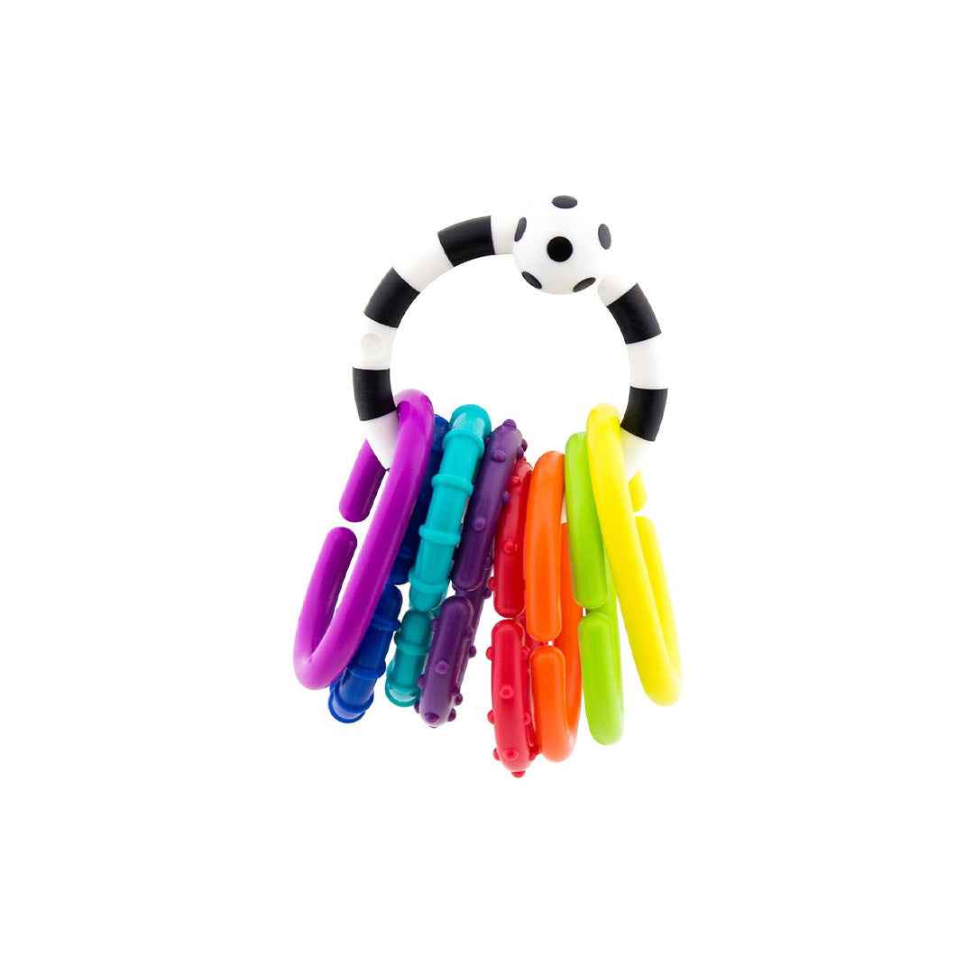 - Includes: A set of brightly colored, multi-textured Sassy Ring O' Links with a large soft-touch ring.