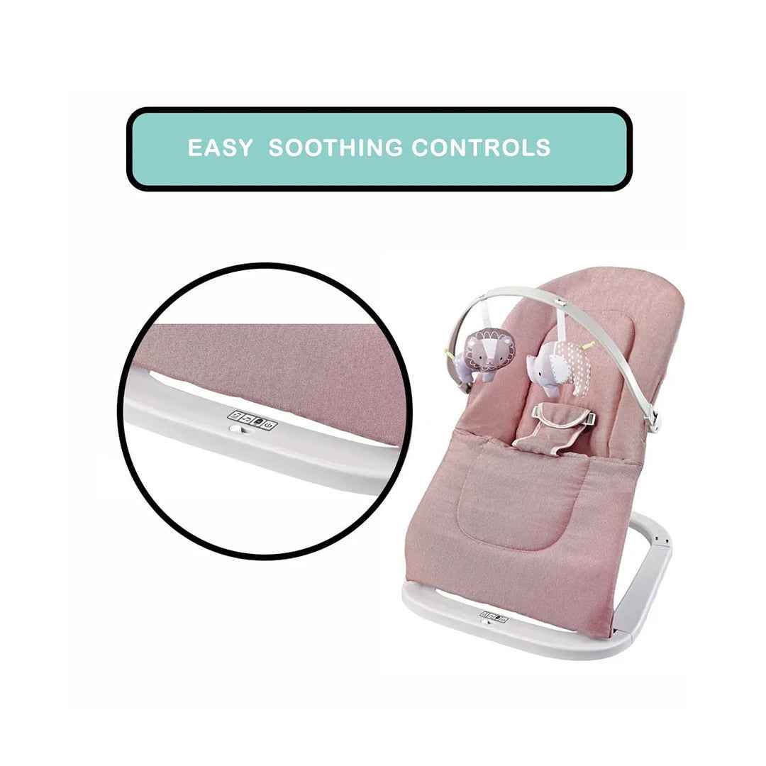 Pamper your little princess with the Winston Baby Bouncer in a delightful pink hue. This baby bouncer is designed for ultimate comfort, featuring ultra-soft fabric, soothing music, and calming vibrations. With adjustable recline angles and a detachable toy bar, it's perfect for both playtime and relaxation. The removable, machine-washable seat ensures easy cleanup, making this baby bouncer a practical and comforting choice for your baby.