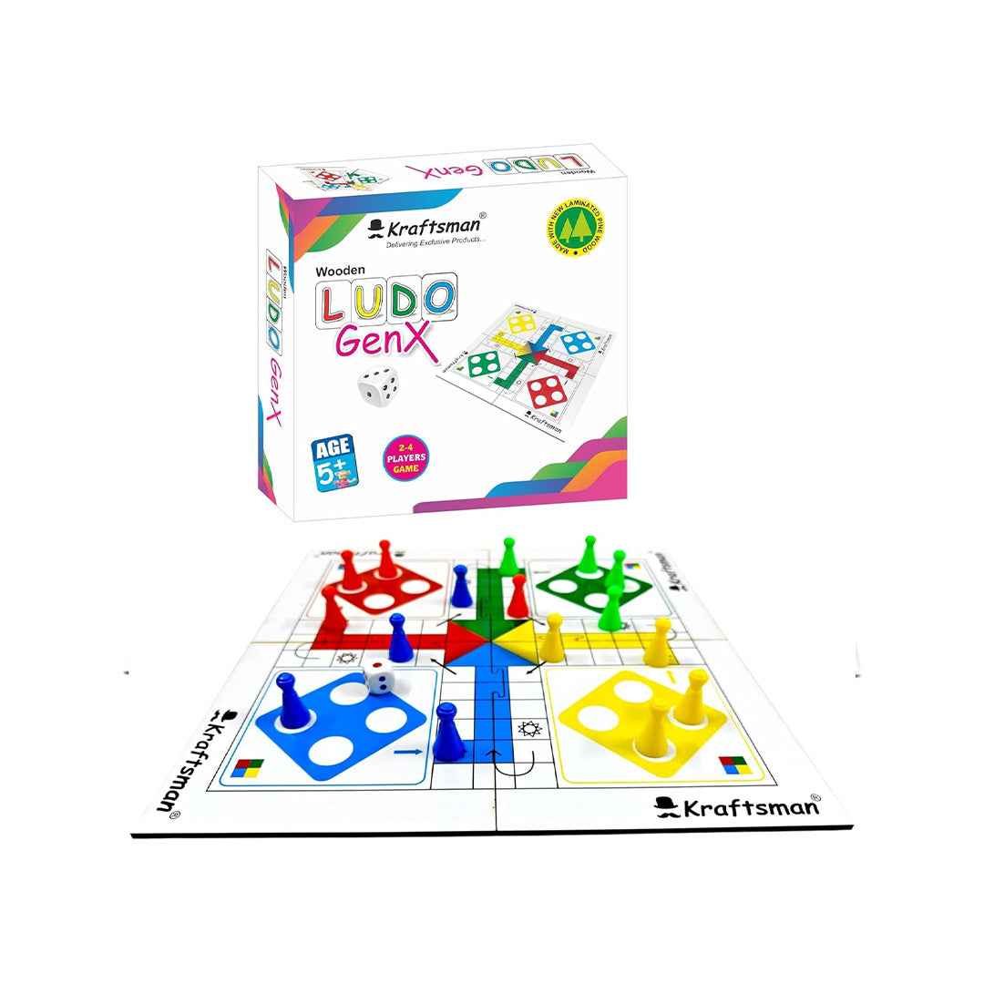 Bring timeless fun to your family and friends with the Kraftsman Wooden Ludo Game! This classic set reimagines the beloved strategy game with a clever, travel-friendly twist. The board features a unique 4-piece puzzle design that connects easily for play and disassembles quickly for storage.